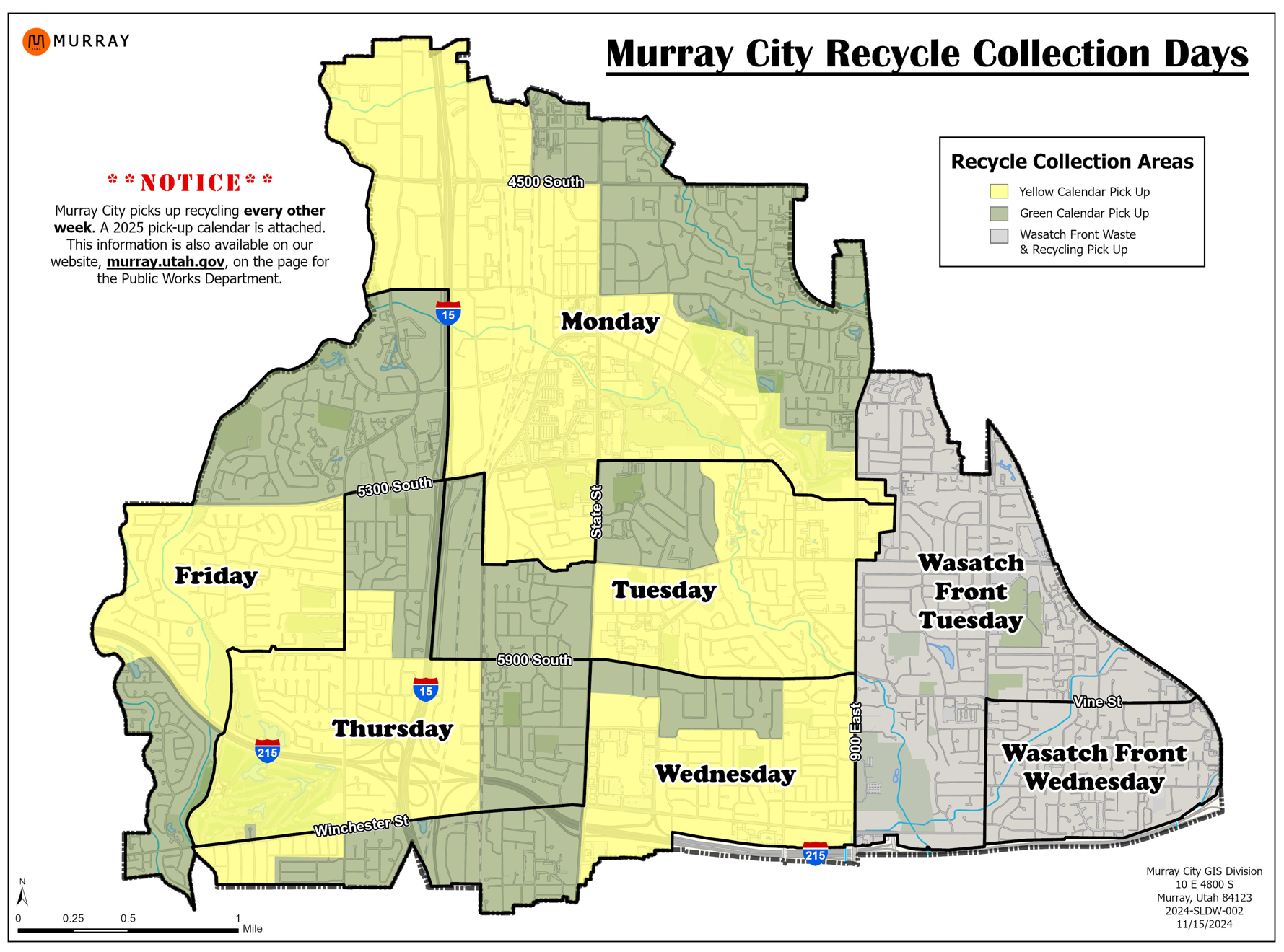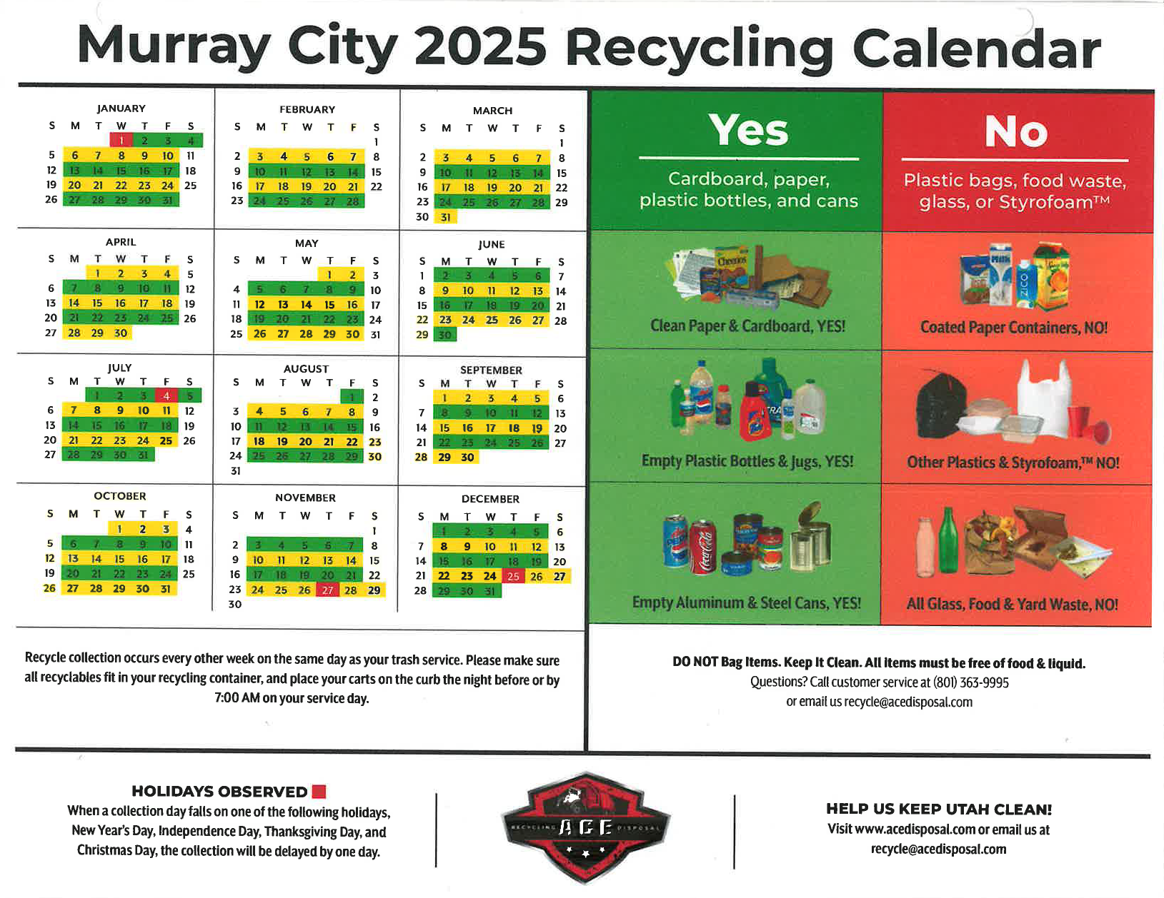 Residents served by Murray City garbage collection services receive a green recycling container along with the regular black automated garbage container for recyclable materials.
